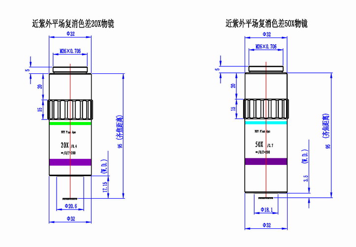 近紫外平場復消色差20X物鏡 |